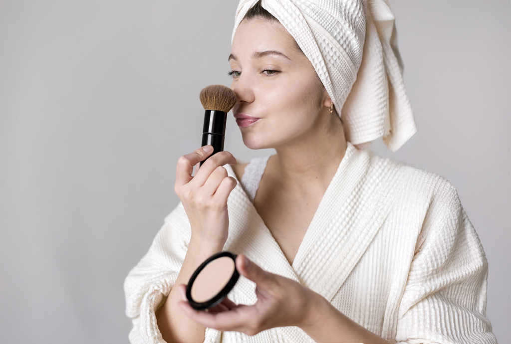 Setting powder, often regarded as the final touch in the makeup routine, is a crucial element for achieving a polished and long-lasting look. It helps lock in your makeup, control shine, and create a smooth, matte finish. Step 5 is all about setting powder. Use a concealer to cover blemishes, dark circles, and imperfections. Dab it lightly onto areas that need coverage and blend gently using your finger or a makeup sponge. Setting powder is the final touch that seals your makeup look, keeping it fresh and in place for hours. When applied correctly, it helps control shine, prevents creasing, and maintains a polished appearance.