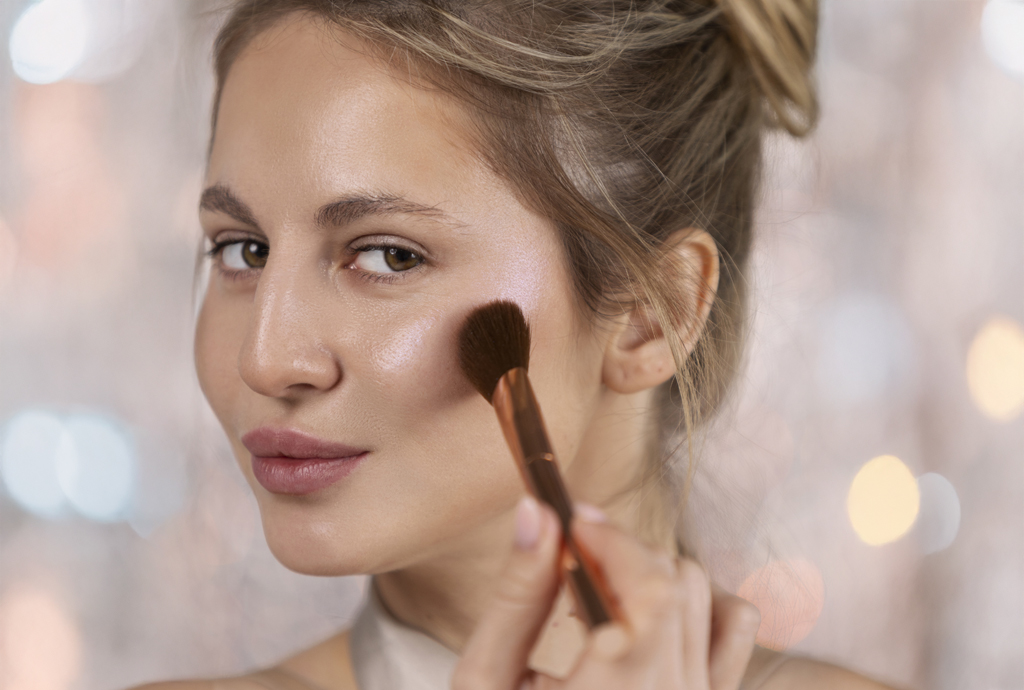 Shade cheekbones and jaw with contour, blending for depth in your makeup order.